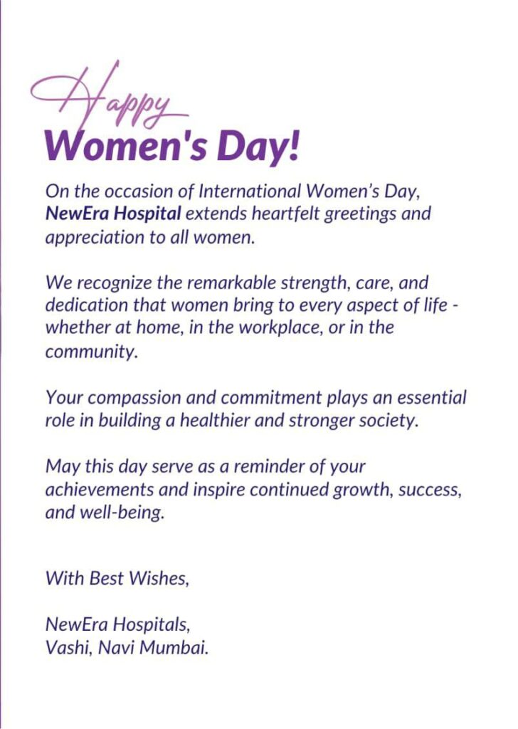 On this special occasion, NewEra Hospitals pleased to introduce the Proactive Women’s Health Package for a limited period, specially designed to take care of women’s health and well-being.