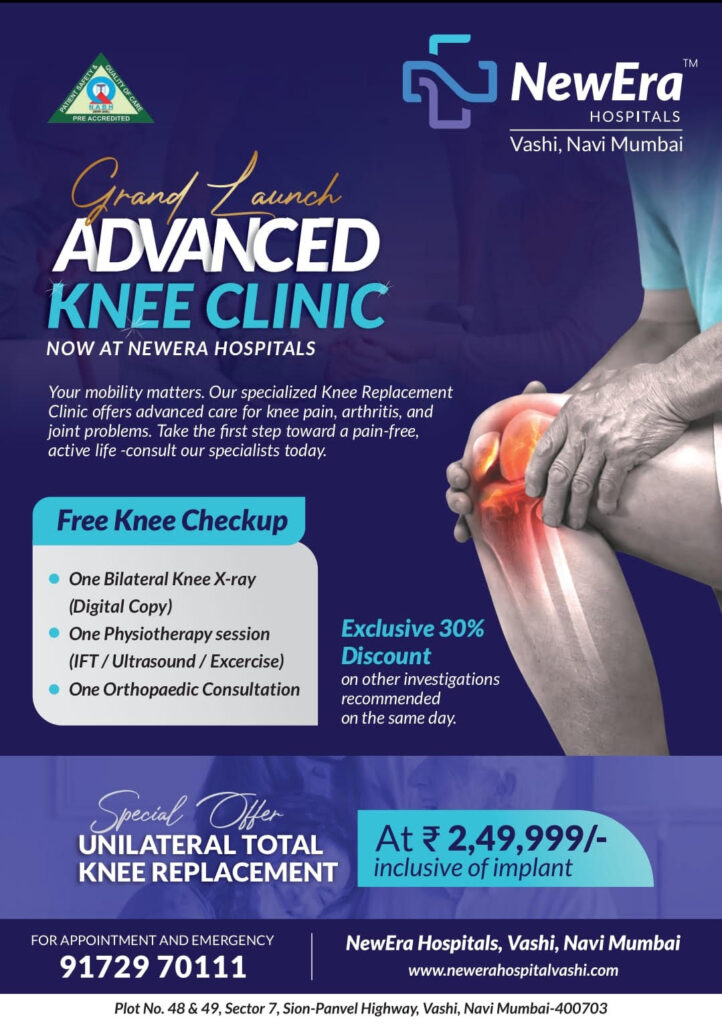 NewEra Hospitals introduces its Advanced Knee Clinic in Vashi, offering expert care for knee pain, arthritis, and joint problems.